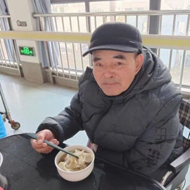 楼层护工推着餐车来到楼层,给长者盛上一碗冬至饺子,长者吃着香喷喷的饺子,脸上洋溢着温暖和喜悦。